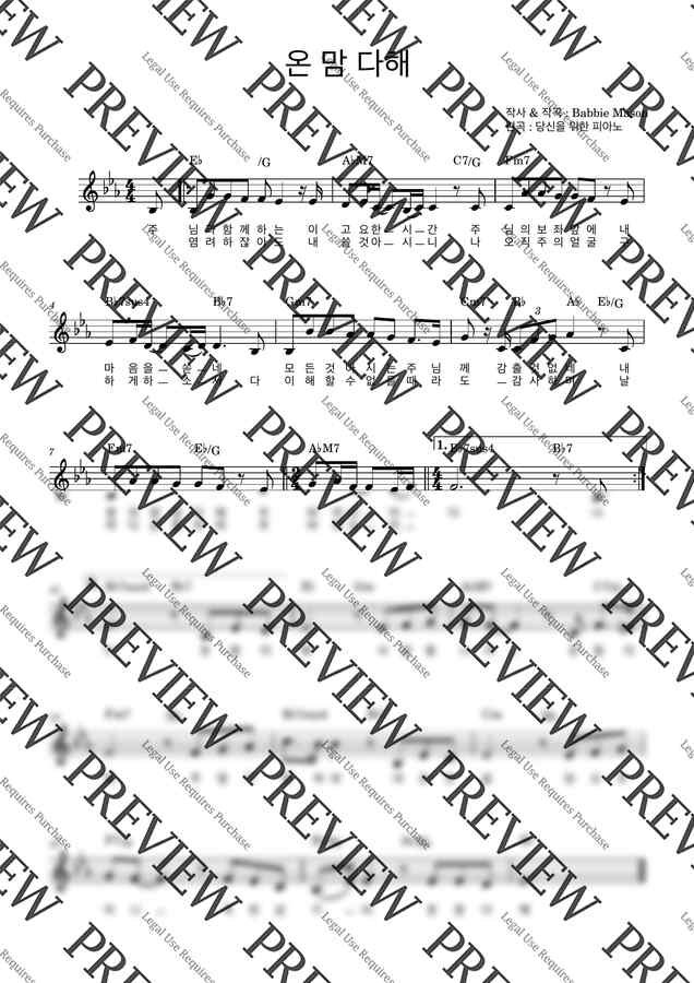 Babbie Mason - 온 맘 다해 (Eb키,가사,코드) by 당신을위한피아노0