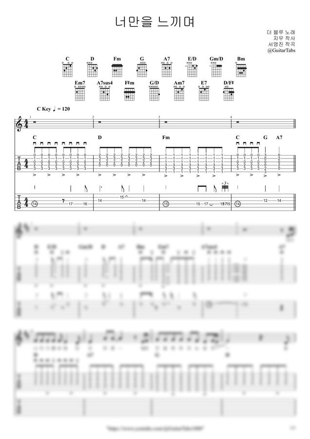 C Key / 5p / 3단(노래+반주+솔로) / 5선(Staff) / 타브(TAB) / 가사(Lyrics) / 코드(Chords)