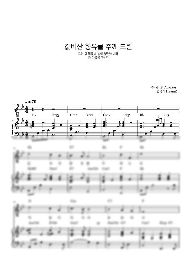 E.P.Parker - 값비싼 향유를 주께 드린 Bb key (편곡악보/쉬운악보) by Hz