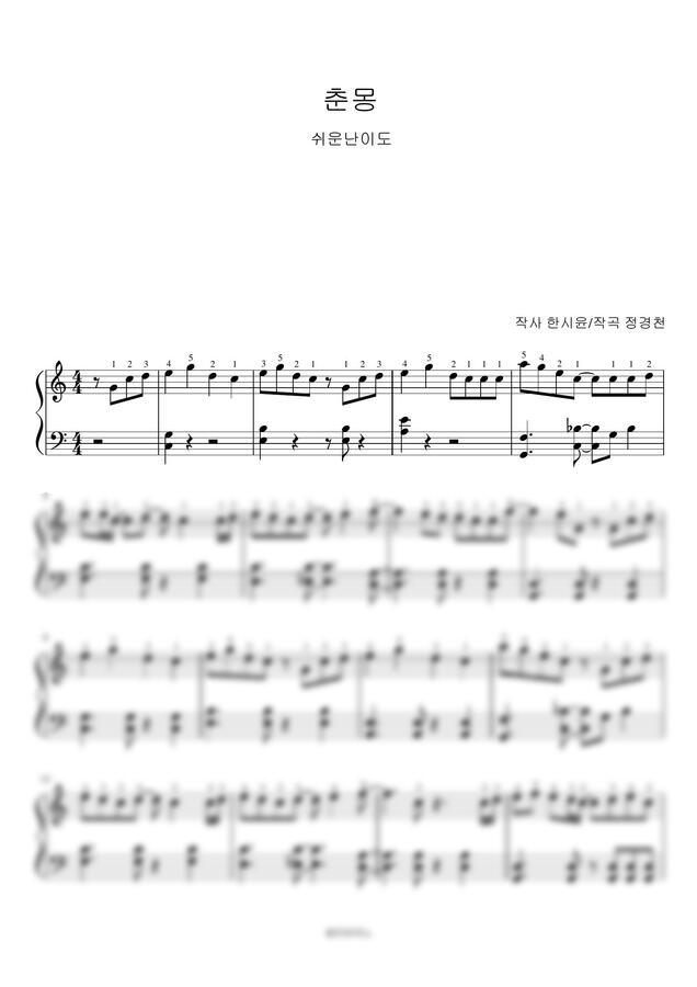 원곡 조성이 아닌 다장조 조성으로 쉽고 재밌게 만들었습니다.