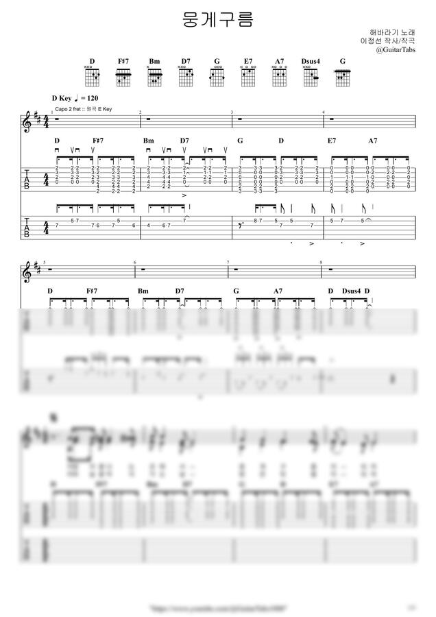 D Key / 3p / 3단(노래+반주+솔로) / 5선(Staff) / 타브(TAB) / 가사(Lyrics) / 코드(Chords)