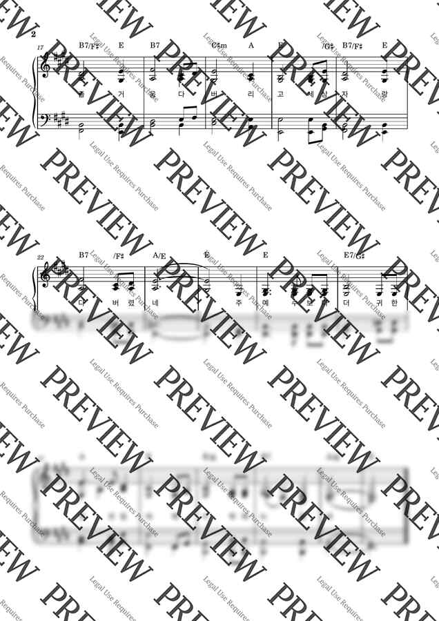 ( 4성부 그대로 전조 : 가사 + 코드 + 피아노 2단악보 )