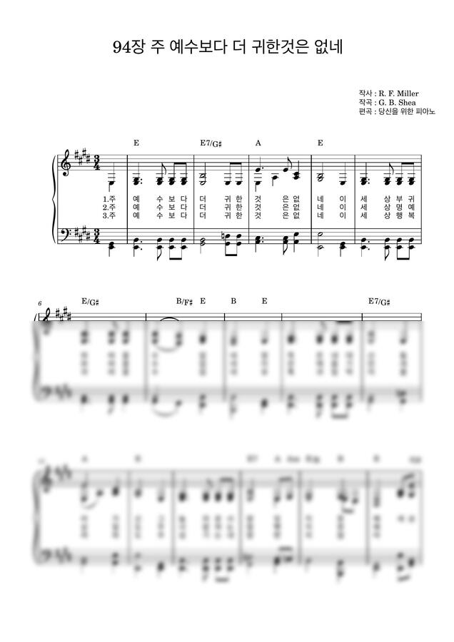 찬송가 94장 - 주 예수보다 더 귀한 것은 없네 (E 전조, 코드포함) by 당신을위한피아노