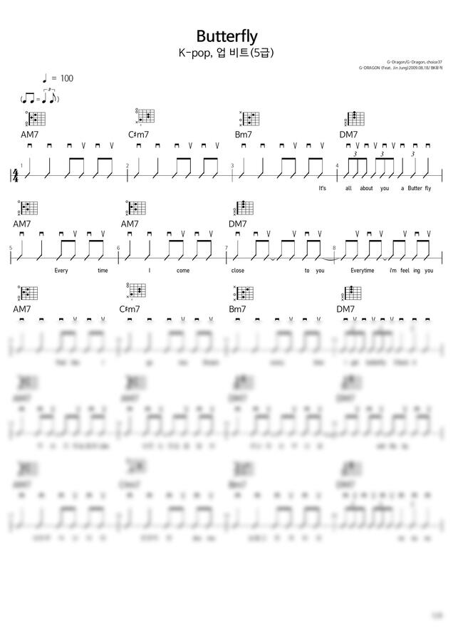 G Dragon(지드래곤) - Butterfly ♩=100(5급) 기타악보4P