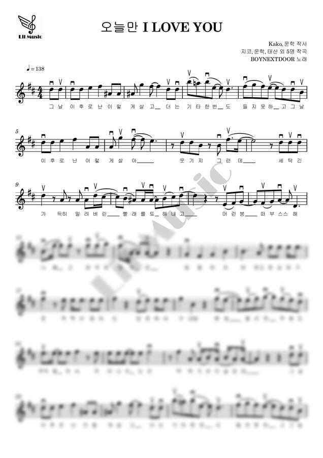 BOYNEXTDOOR (보이넥스트도어) - 오늘만 I LOVE YOU / ★바이올린 악보★ by 릴뮤직0