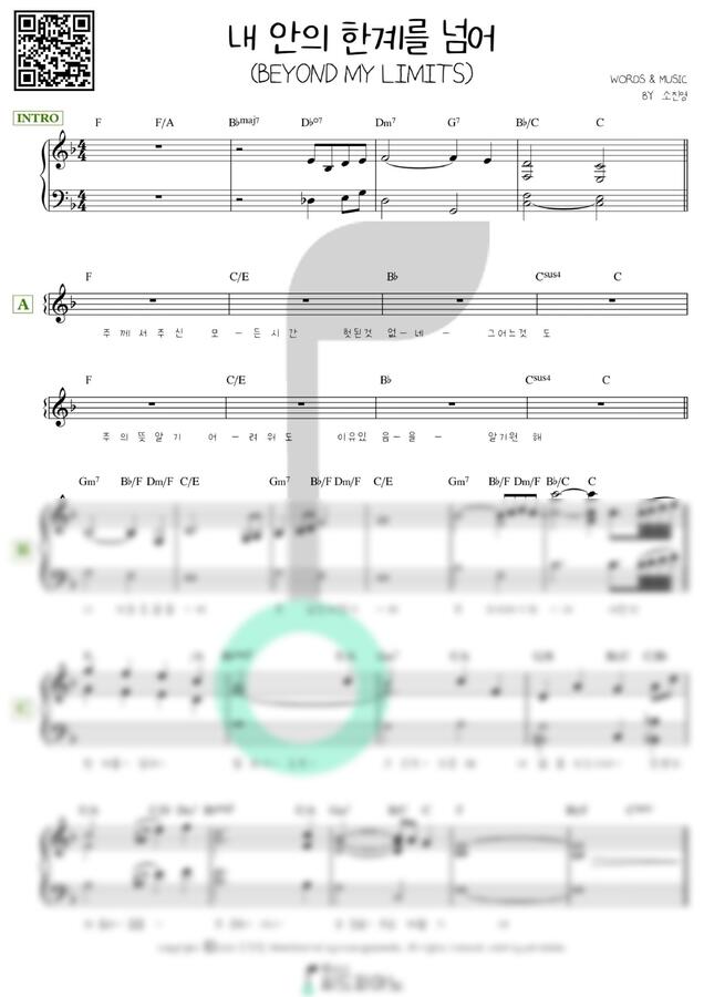 마커스워십 - 내 안의 한계를 넘어 (FKey |세컨악보) by 씨드피아노1