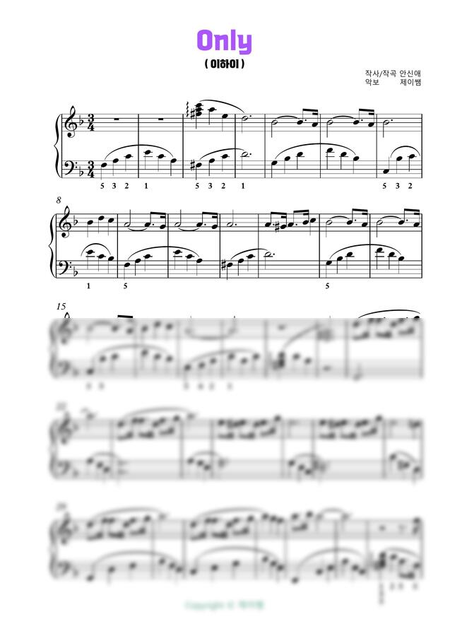 악보 > 이하이 - Only (온리) (짧고 쉽게) | 제이쌤