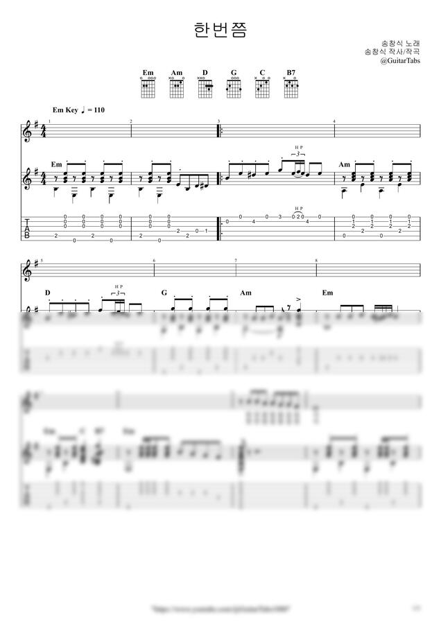 Em Key / 3p / 2단(노래+반주) / 5선(Staff) / 타브(TAB) / 가사(Lyrics) / 코드(Chords)