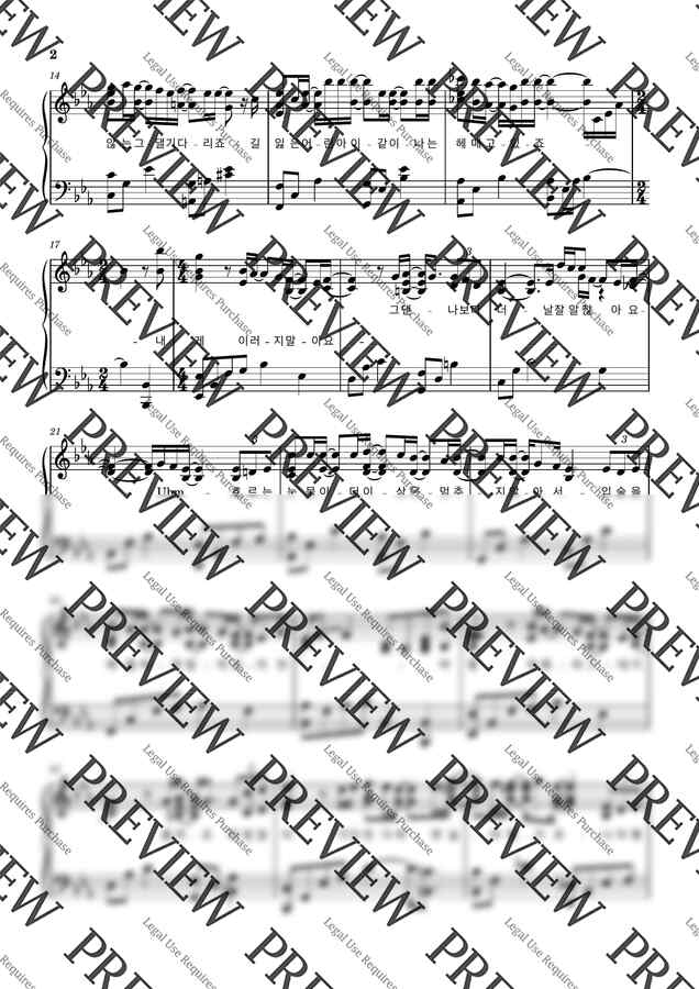 원곡버전 피아노 연주 악보입니다.