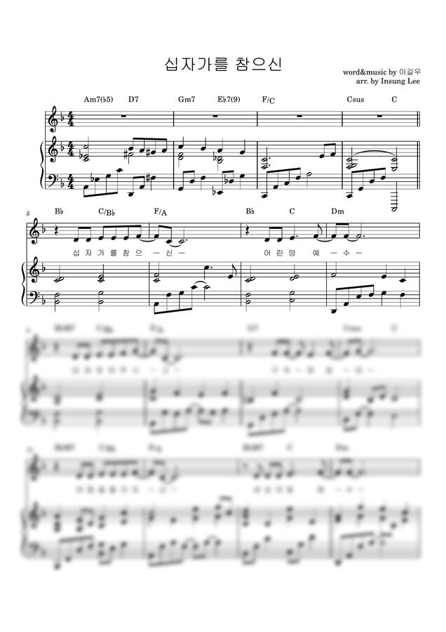 이길우 작사작곡 [십자가를 참으신 어린양 예수] F key 피아노 반주 악보입니다.