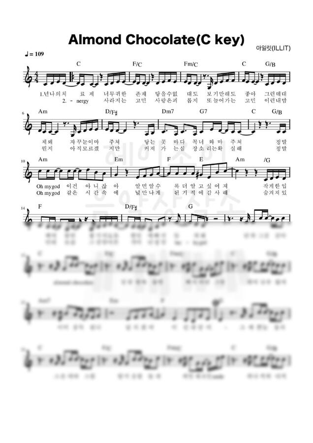 아일릿의 아몬드초콜릿 다장조(C key) 악보 입니다. :)