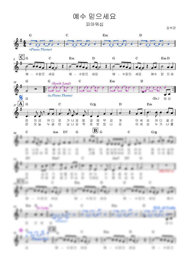 피아워십 - 예수 믿으세요 (리드시트) by 동네음악실