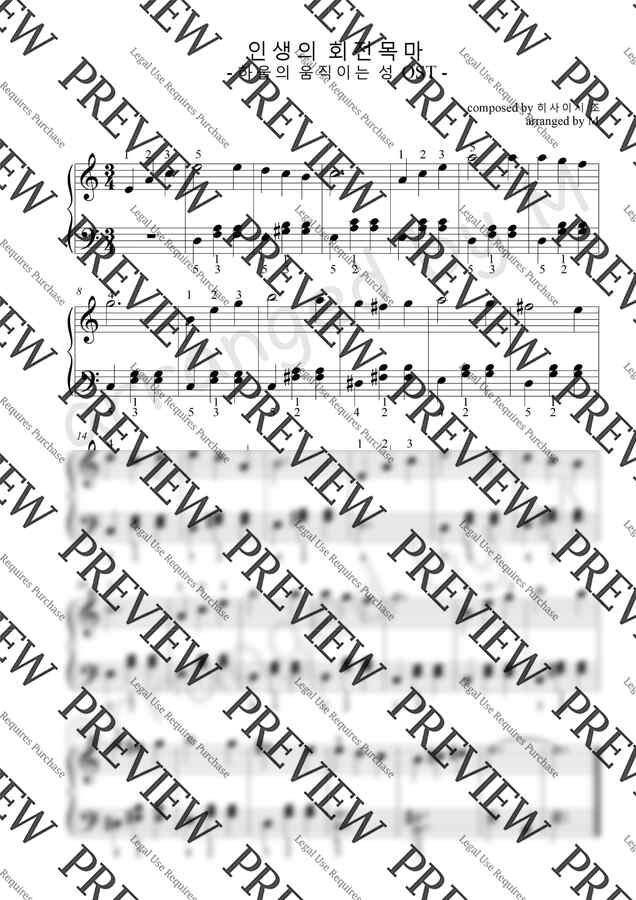 하울의움직이는성 OST - 히사이시조 - 인생의 회전목마 (C key/ 보통 난이도) 악보 보러 가기