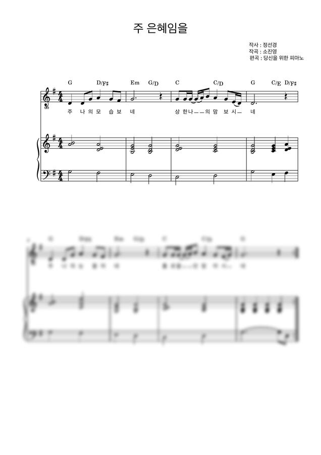 마커스 - 주 은혜임을 (G키,3단반주,코드) by 당신을위한피아노