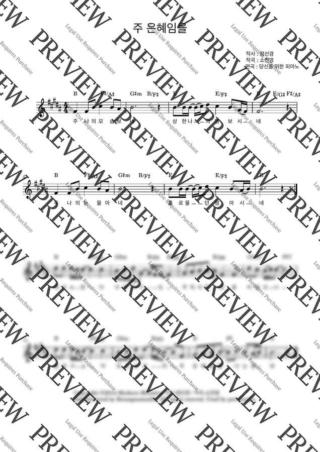 마커스 - 주 은혜임을 (B키,가사,코드) by 당신을위한피아노