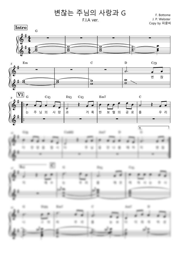 피아워십 - 변찮는 주님의 사랑과 (세컨악보) (원곡 G Key) by 피클씨
