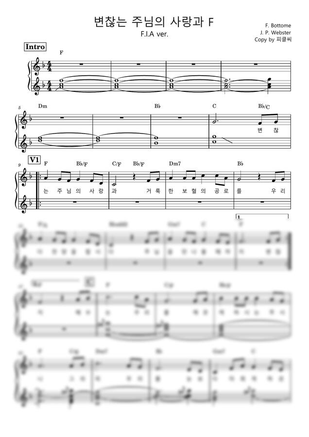 피아워십 - 변찮는 주님의 사랑과 (세컨악보) (F Key) by 피클씨1