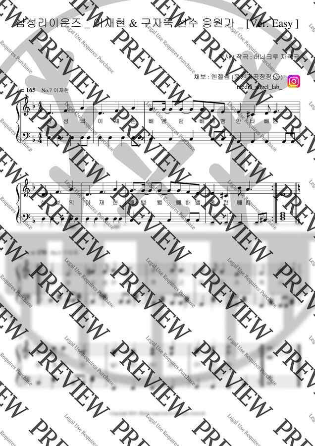 📖 본 응원가 악보는 아이들의 교육 목적으로 직접 채보하여 제작한 자료입니다.
