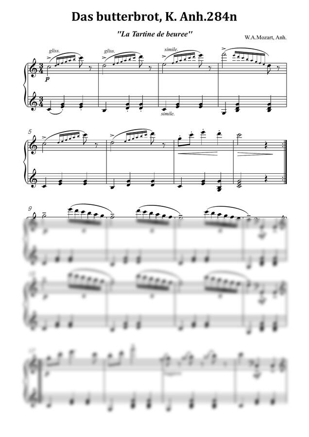 모차르트 - 버터 바른 빵-피아노 솔로 by 악보다나와