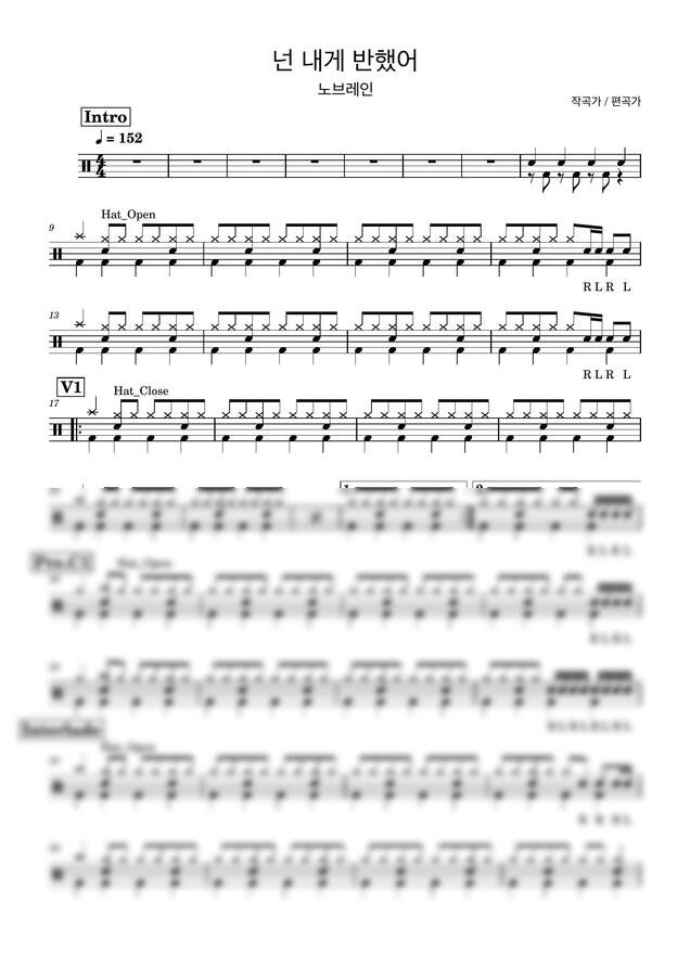 노브레인 - 넌 내게 반했어 (드럼악보/난이도별) by Drummer KWI