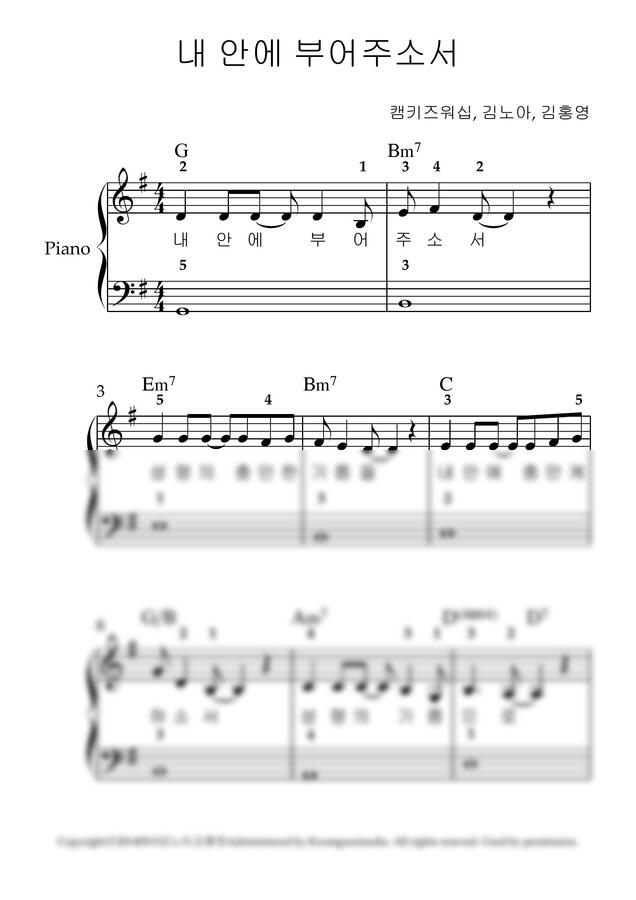 김노아 - 내 안에 부어주소서(쉬운 악보/왼손 간단)샵 하나 by 바다AnnePiano