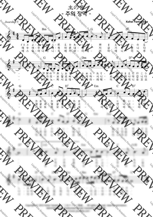 개별 악보를 원하는 분들이 계셔서 "주의 장막 (主の宮)"라는 찬양의 한글토시 악보 올립니다.