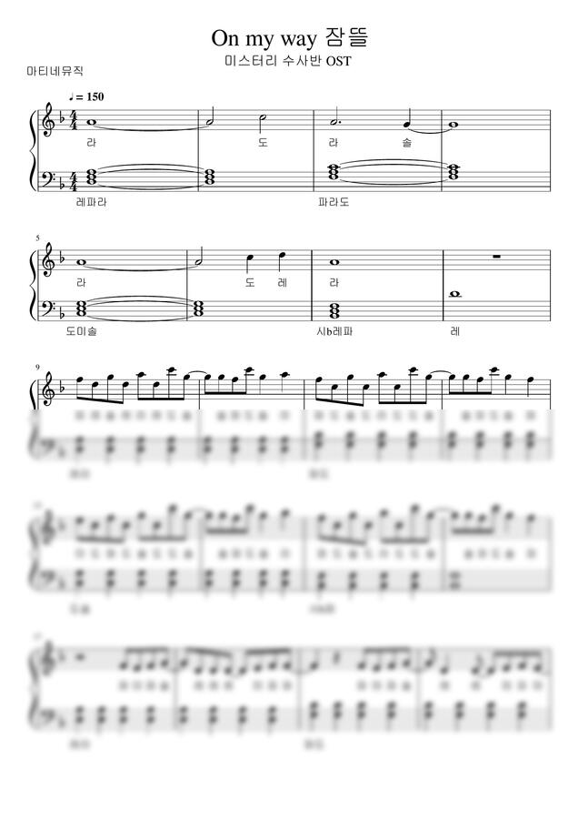 잠뜰 - On my way 미스터리 수사반 OST (쉬운 계이름 악보) by by.마티네뮤직