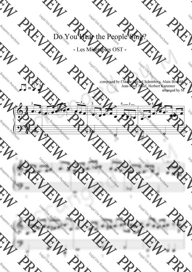 조표있는 레미제라블OST - Do You Hear The People Sing? 옥타브 진행 없는/ 보통 난이도 피아노 악보 보러 가기