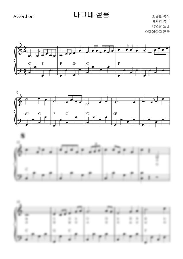 백년설 - 나그네 설움 (아코디언악보, 난이도 중급) by 스카이아코