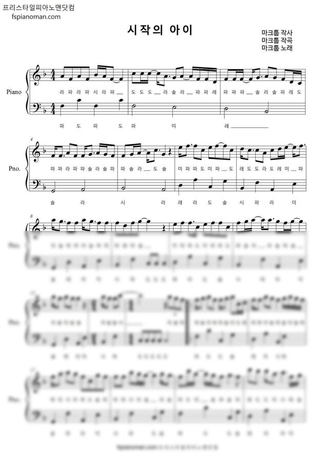 마크툽 (MAKTUB) - 시작의 아이(초급1,2) (계이름악보포함) by 프리스타일피아노맨닷컴