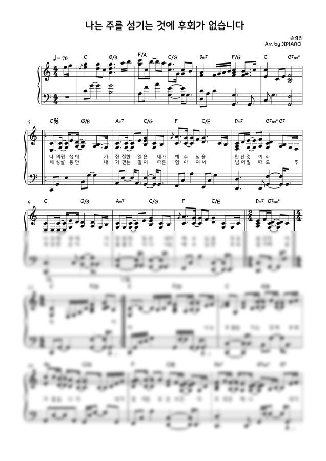 손경민 - 나는 주를 섬기는 것에 후회가 없습니다(C key) (멜로디들리는2단반주) by JINPIANO