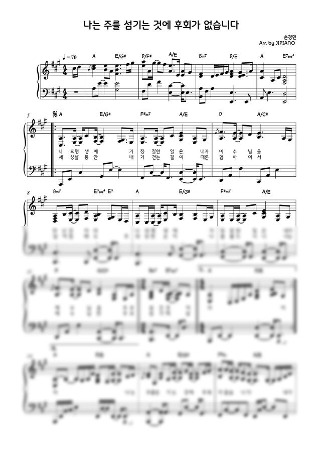 손경민 - 나는 주를 섬기는 것에 후회가 없습니다(A key) (멜로디들리는2단반주) by JINPIANO0