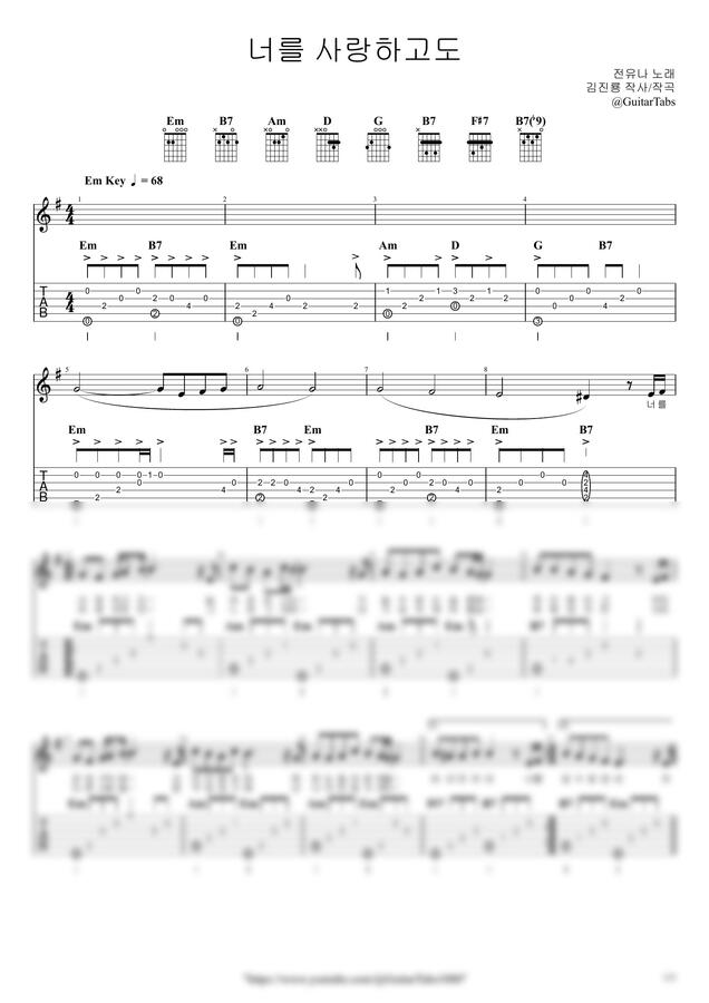 Em Key / 3p / 2단(노래+반주) / 5선(Staff) / 타브(TAB) / 가사(Lyrics) / 코드(Chords)