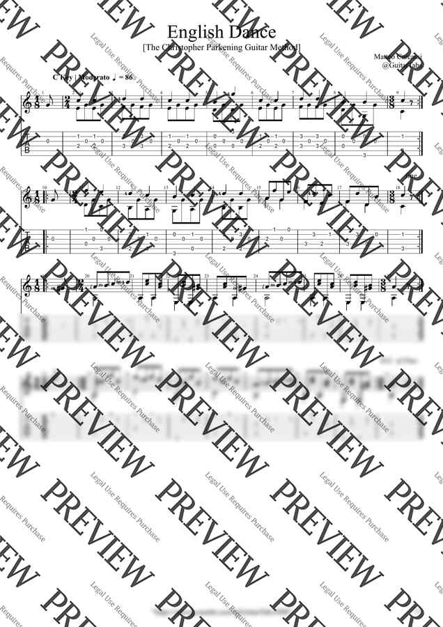 C Key / 1p / 1단(솔로) / 5선(Staff) / 타브(TAB) / 운지(Fingering)