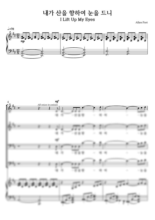 알렌 포트 - 내가 산을 향하여 눈을 드니-4부 합창 by 악보다나와