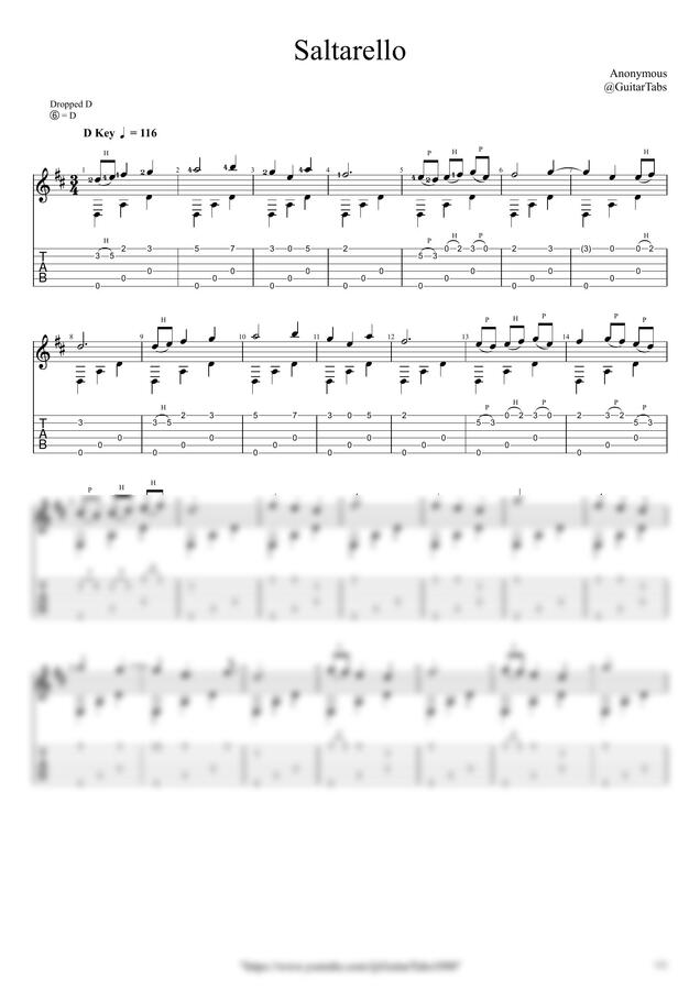 D Key / 2p / 1단(솔로) / 5선(Staff) / 타브(TAB) / 운지(Fingering)