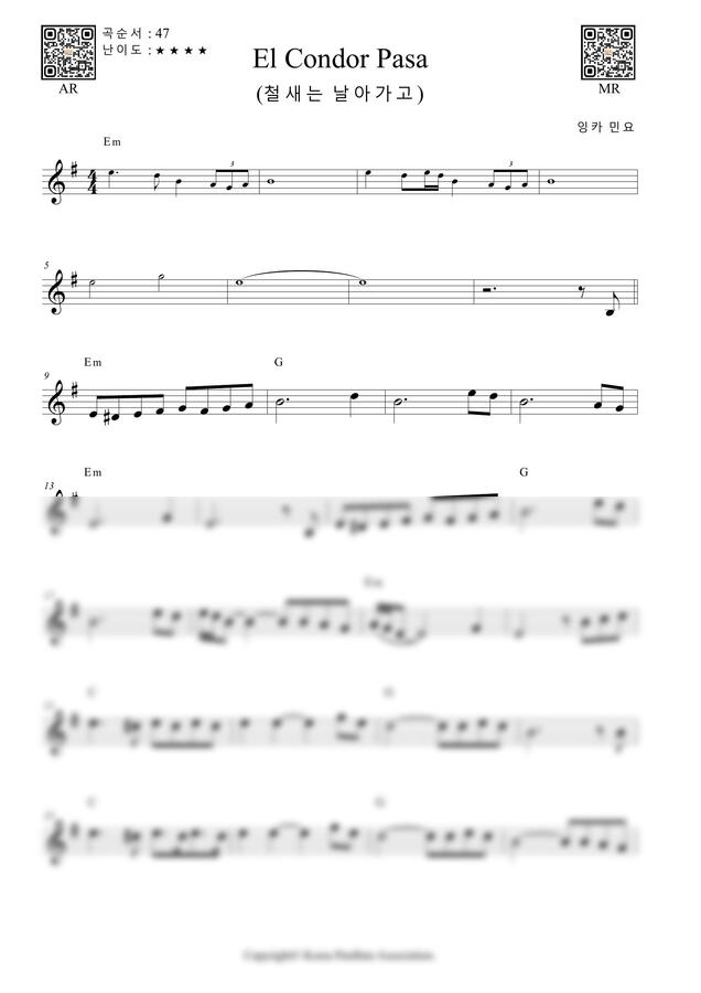 본 악보집은 실제 팬플루트 연주(AR)와 반주(MR)를 유튜브를 통해 제공됩니다.