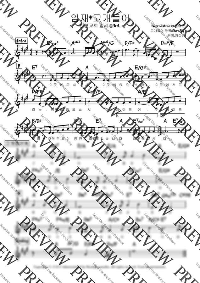 밴드팀과 보컬팀 모두 이 악보가 필요합니다.