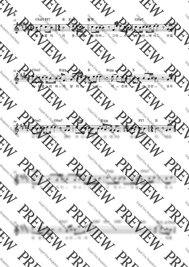 B키 멜로디 + 가사 + 코드 악보입니다 😊