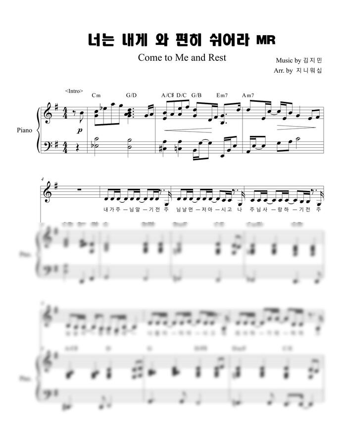 너는 내게 와 편히 쉬어라 Bb키 악보 바로가기 https://www.mapianist.com/sheet/143436
