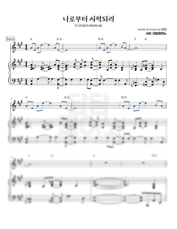 이천 - 나로부터 시작되리 (G-A-Bb/B-C) by 담담피아노