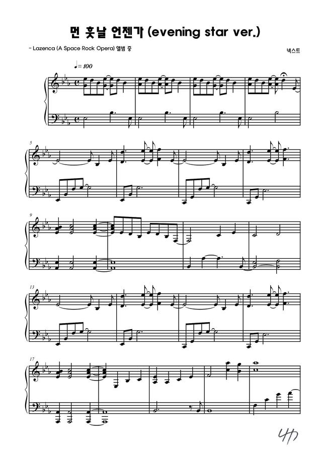 넥스트의 Lazenca (A Space Rock Opera) 앨범 중 먼 훗날 언젠가 (evening star ver.)의 피아노 버전 악보입니다.