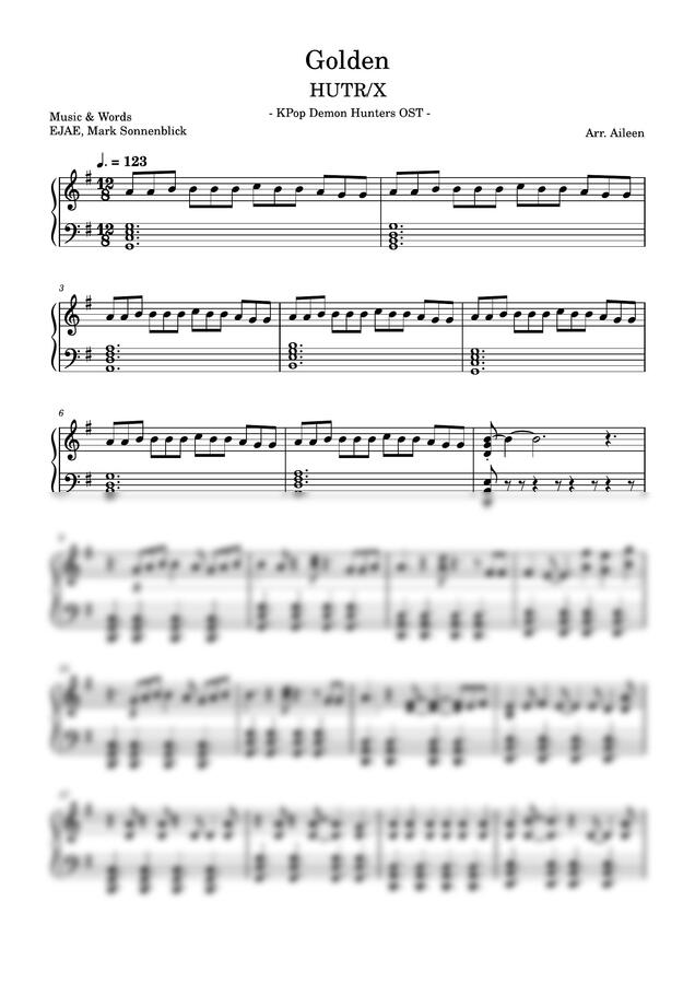 HUNTR/X의 Golden 피아노 악보 입니다.