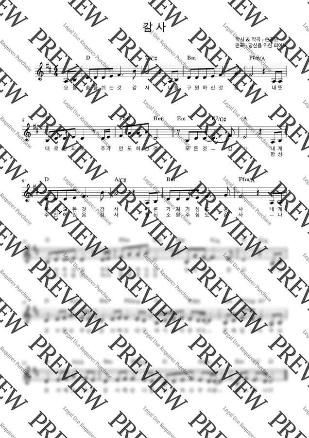 손경민 - 감사 (D키,가사,코드) by 당신을위한피아노