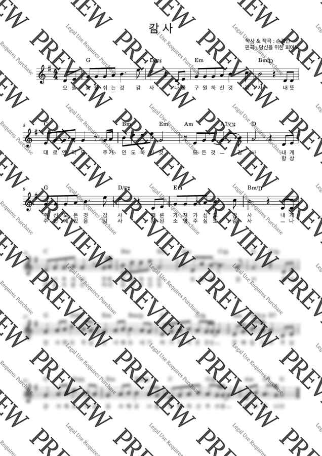 손경민 - 감사 (G키,가사,코드) by 당신을위한피아노 1p 미리보기