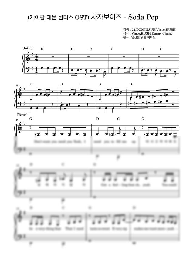 케이팝 데몬 헌터스 OST - 소다팝(Soda pop)-사자보이즈(SajaBoys) (쉬운G키,가사,코드) by 당신을위한피아노