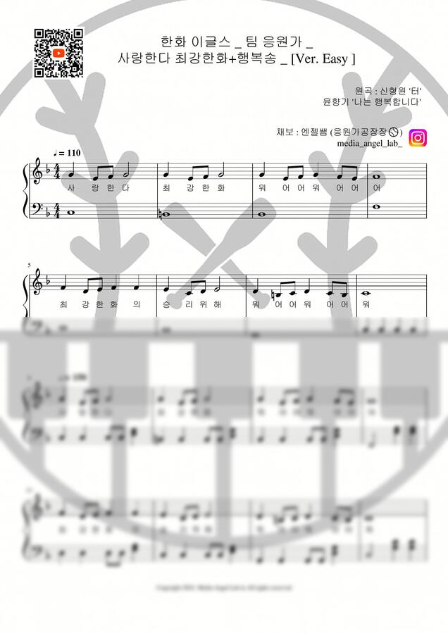 📖 본 응원가 악보는 아이들의 교육 목적으로 직접 채보하여 제작한 자료입니다.