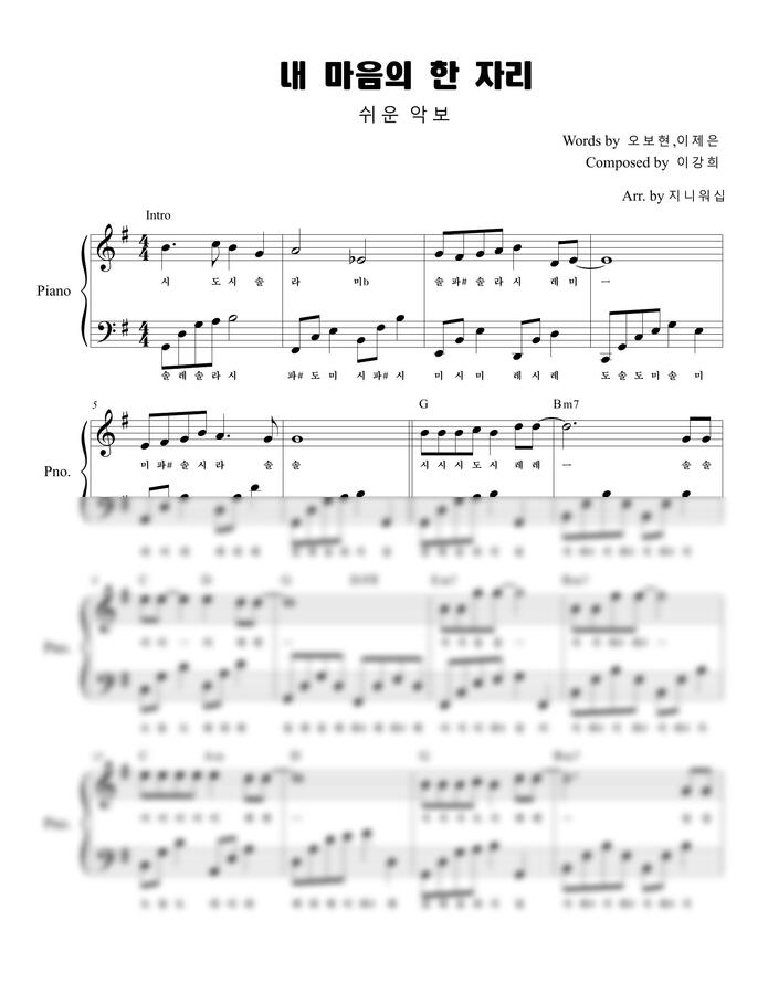 내 마음의 한 자리 쉬운 악보 A키 바로가기 https://www.mapianist.com/sheet/144891