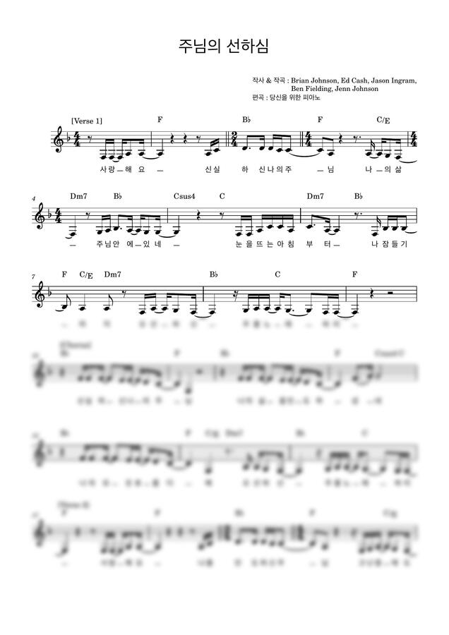 Brian Johnson - 주님의 선하심(Goodness of God) (F키,가사,코드) by 당신을 위한 피아노1