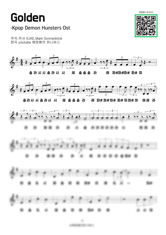 케이팝데몬헌터스OST - Golden (쉬운 리코더 악보) by 혜영쌤의뮤니버스